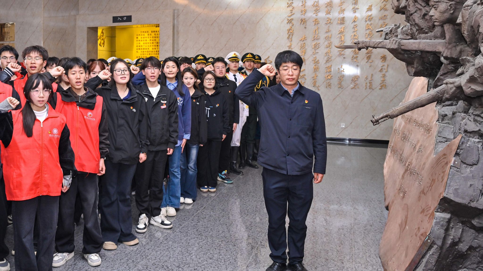 “我志愿加入中国共产党……”在领誓人带领下,全体学生党员面对党旗重温入党誓词,表达了继承先烈遗志、永葆政治本色的坚定决心。在场团员代表也深受感染,表示要积极向党组织靠拢。