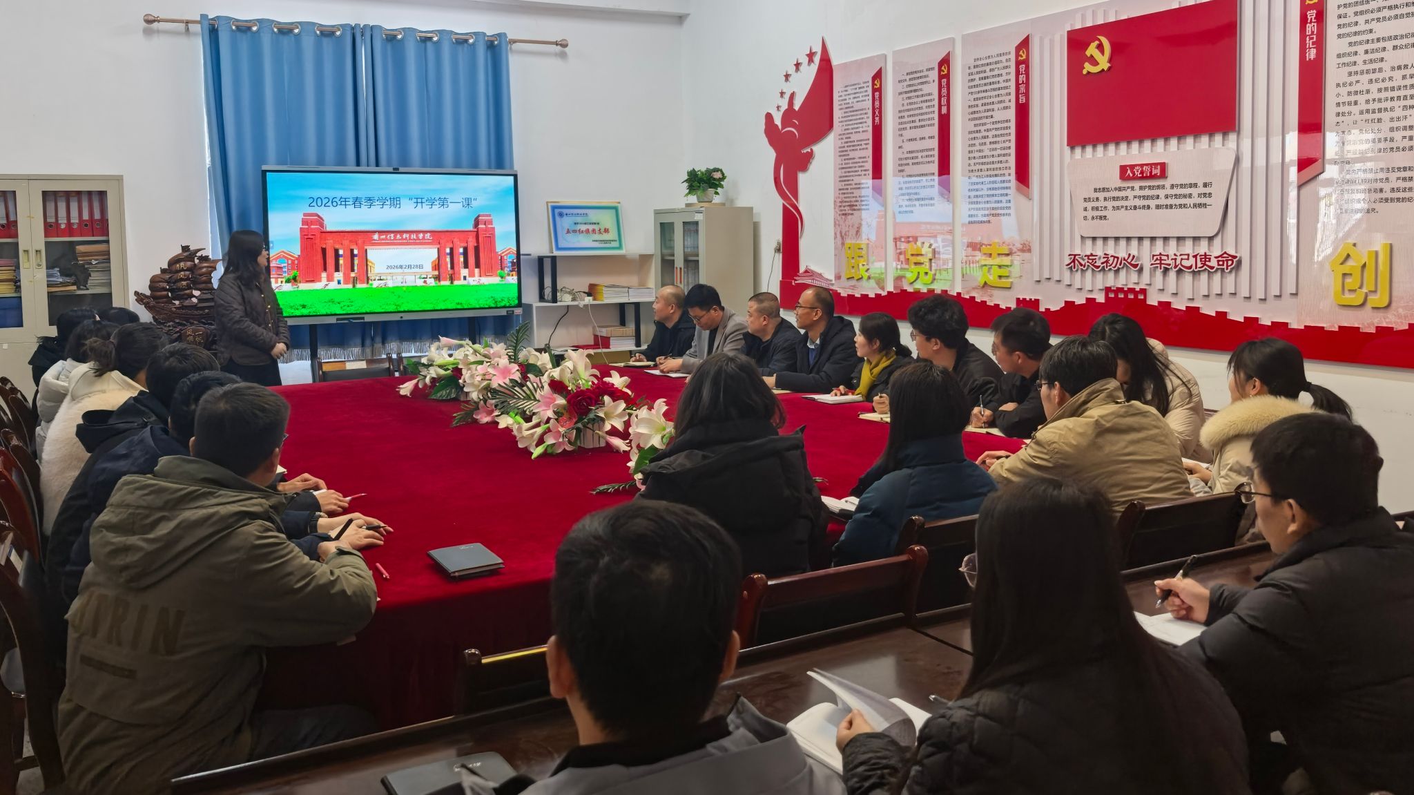 新学期启航在即,兰州信息科技学院土木工程学院于2月28日组织全体教师开展《开学第一课》教学示范课活动。本次示范课由学院骨干教师魏彩荷老师主讲,通过遴选师生先进典型事迹,充分运用学校教育教学成果,着力激发学生的进取精神,强化其学业自信与职业使命感,为新学期营造积极向上、温馨和谐的育人氛围奠定了坚实基础。
