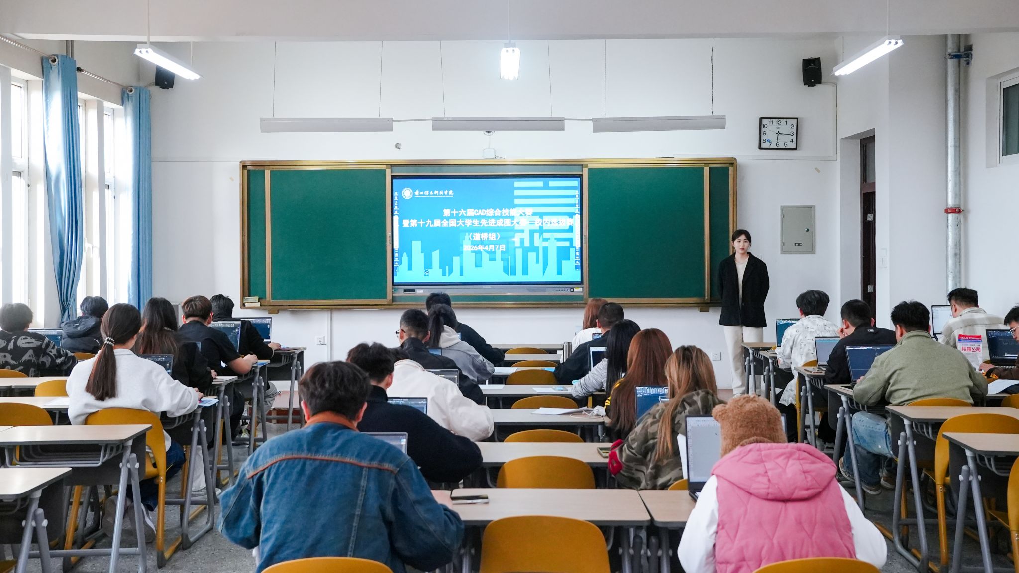 4月7日-8日晚,兰州信息科技学院的教学楼内灯火通明,键盘敲击声与鼠标点击声此起彼伏——第十六届CAD综合技能大赛暨第十九届全国大学生先进成图技术与产品信息建模创新大赛甘肃赛区校级选拔赛正在这里开展激烈角逐。来自建筑类、道桥类、水利类三个专业方向的众多优秀学子分赛场同步竞技,用精湛的绘图技术和严谨的工程思维,展开了一场脑力与手速的巅峰对决。